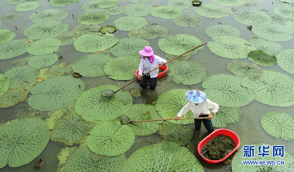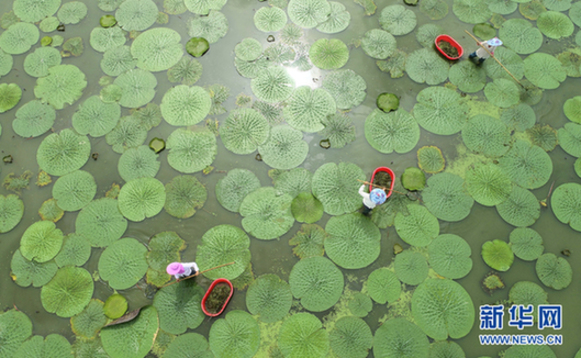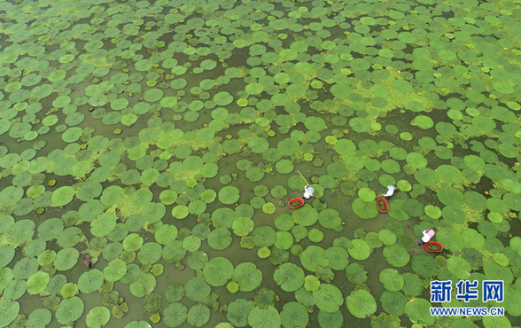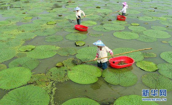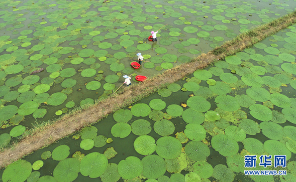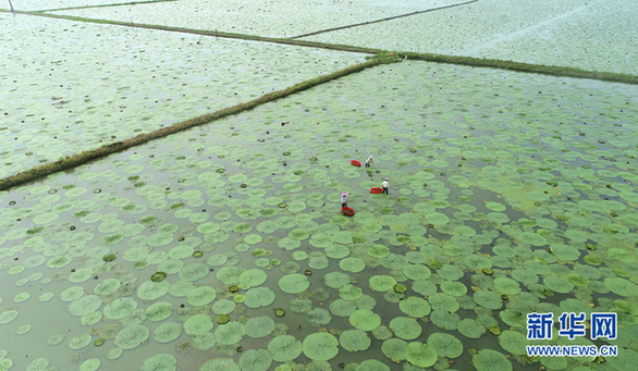 近年来,安徽省庐江县白湖镇利用丰富水资源,大力发展莲藕、荸荠、芡实等绿色水生经济作物种植,实施规?;种病⒆ㄒ祷芾?、产业化生产、一体化经营,助推农业生产向绿色优质、增效增收升级转型。新华网发(王闽摄)