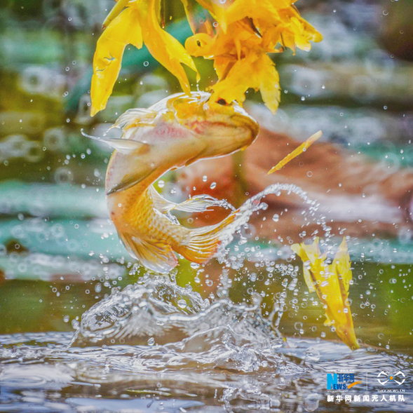 【“飞阅”中国】美!“鱼吃花” 画面生趣灵动