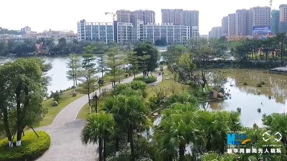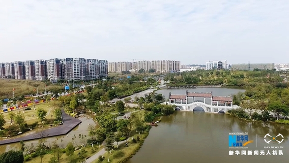 航拍佛山市罗村孝德湖公园全景。新华网发