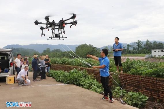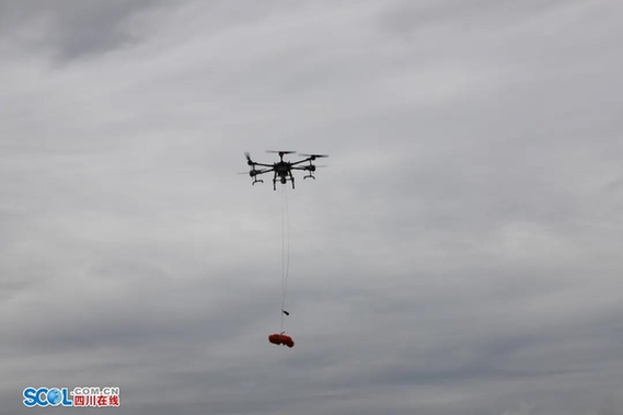 夹江一工人被洪水围困 无人机空投“救命绳”