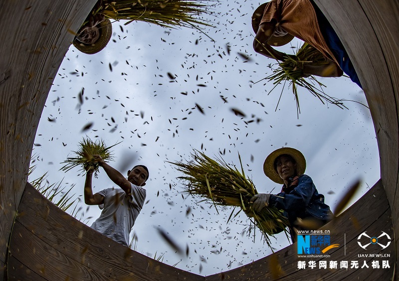 图为秭归农民确保秋粮颗粒归仓。新华网发(郑家裕 摄)