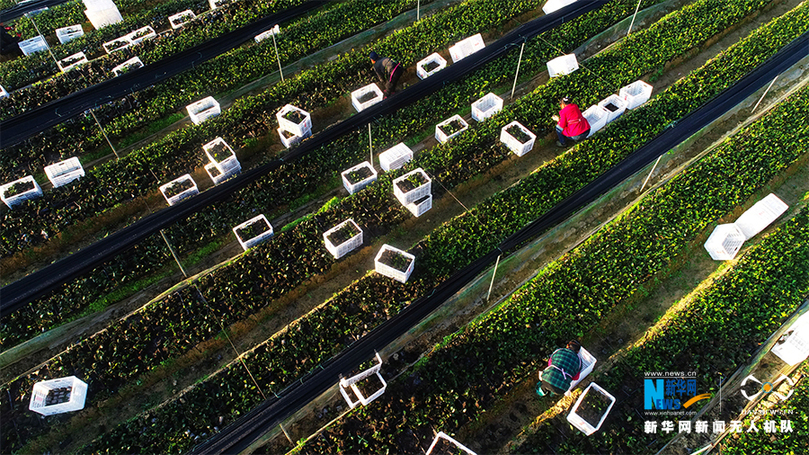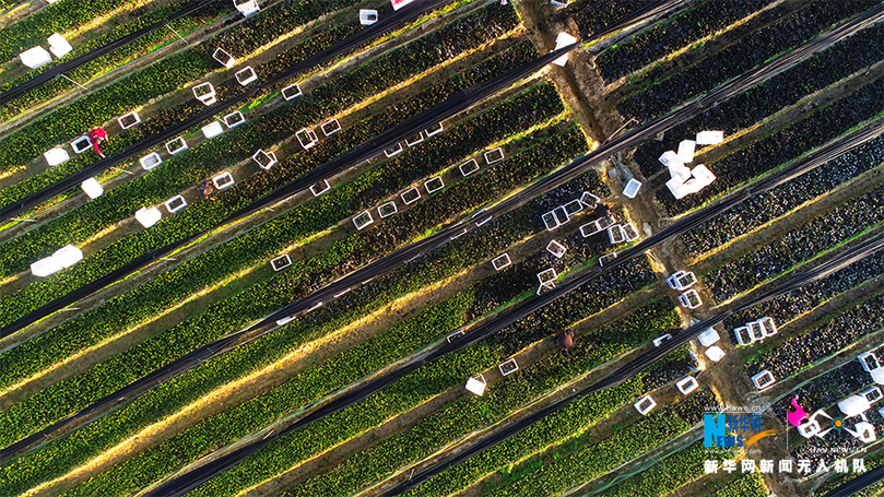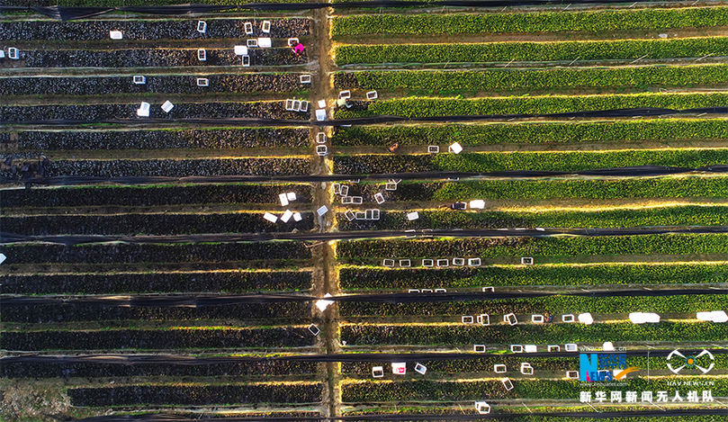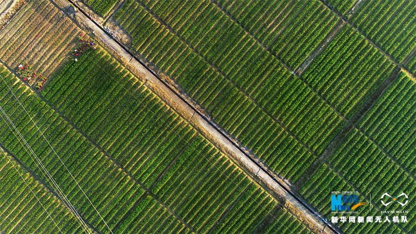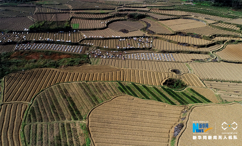 无人机航拍村民忙碌场景。新华网发(陈碧生 摄)