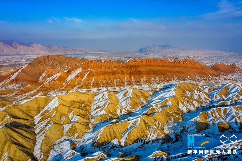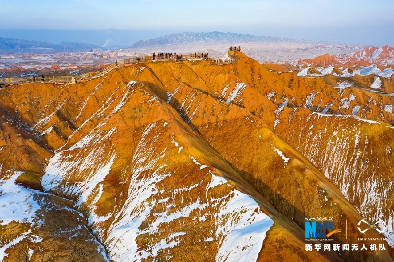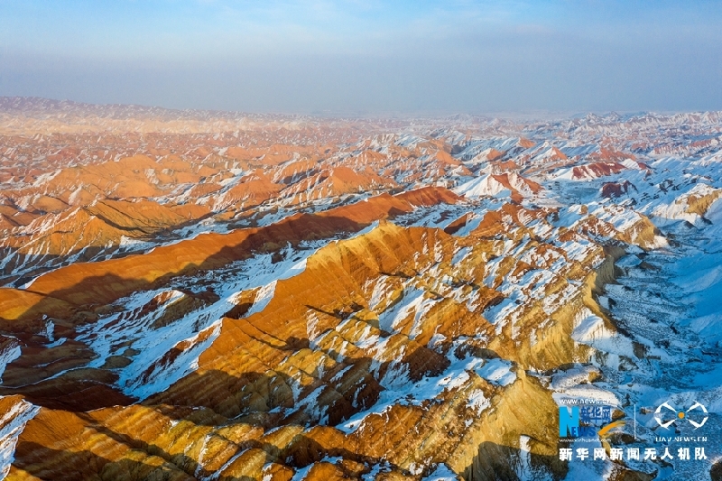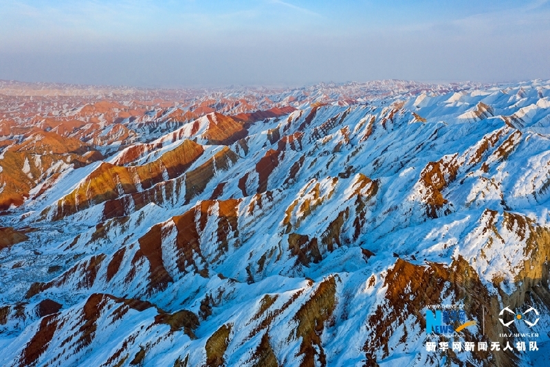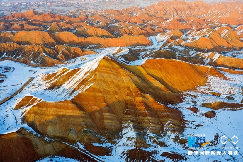 张掖七彩丹霞景区是国内外罕见的丹霞地貌和彩色丘陵复合体,色彩艳丽,气势磅礴,雪后丹霞更是妖娆多姿。新华网发(成林摄)
