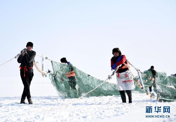 新疆阿勒泰地区福海县乌伦古湖每年12月中下旬进入“冬捕”季。乌伦古湖是中国十大内陆淡水湖之一,冬季冰上大拉网捕鱼是乌伦古湖的传统捕鱼方式,场面壮观。