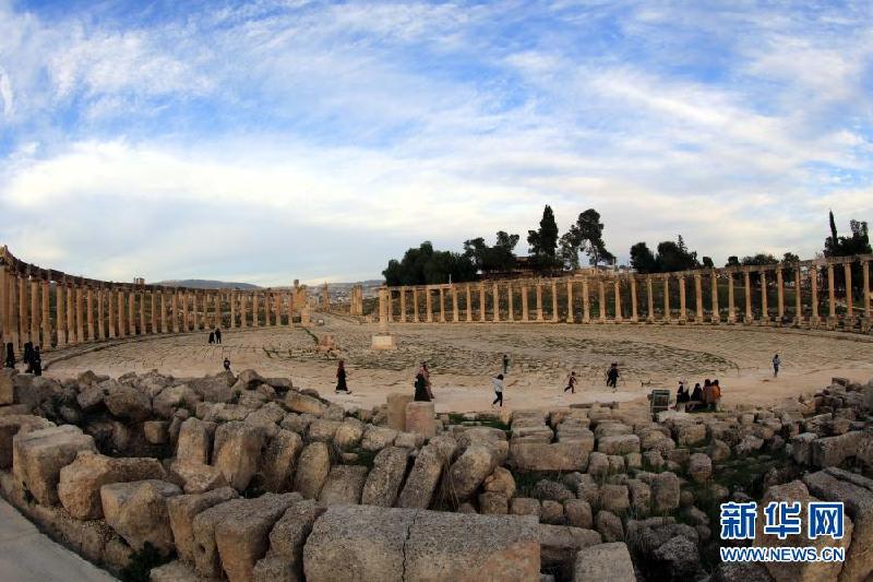 1月26日,游客参观约旦杰拉什古城。新华社发(穆罕默德·阿布·古什摄)