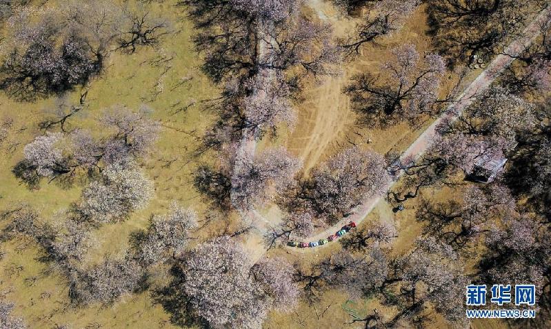 近日,随着气温回升,内蒙古呼和浩特市回民区东乌素图村中的大片杏花竞相开放,吸引游人前来踏青赏花。