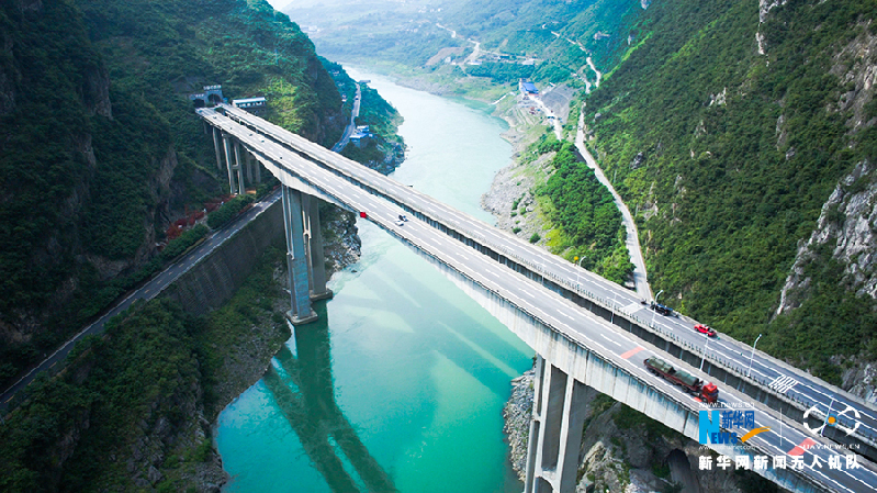 在乌江上穿行而过的G65包茂高速。新华网 黄俊辉 向进摄