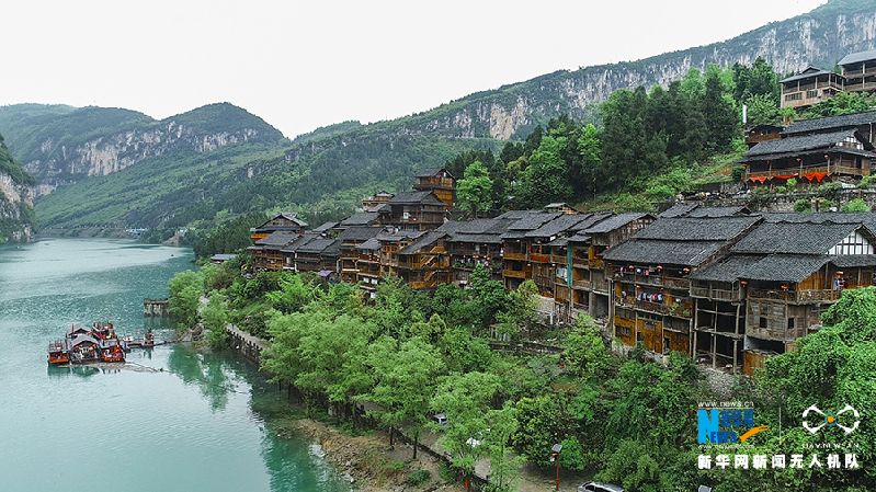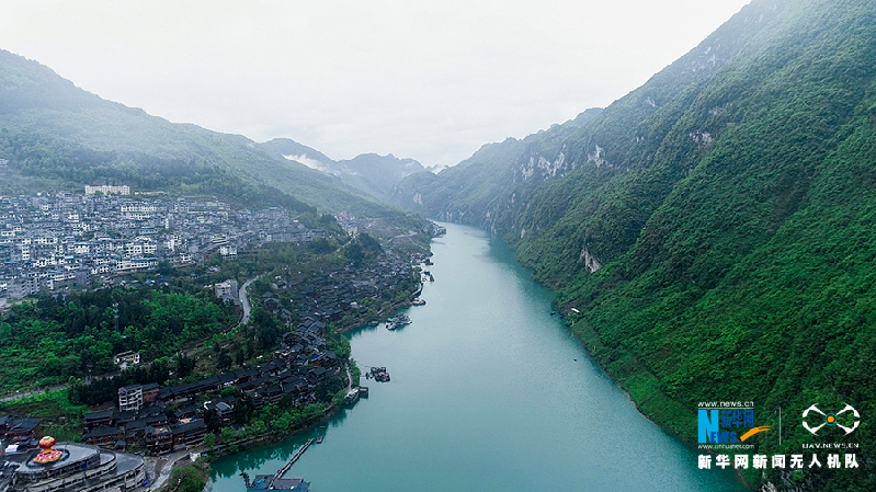 航拍视角下的龚滩古镇。新华网 彭博 向进 摄