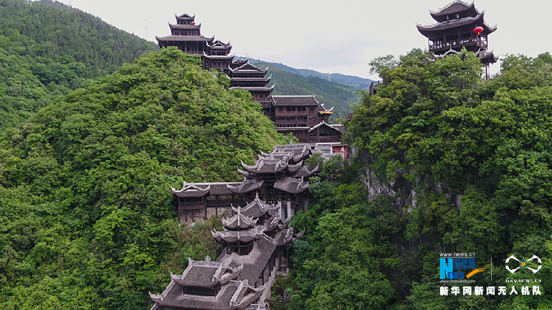 航拍苗族建筑群——蚩尤九黎城。新华网 彭博 向进 摄