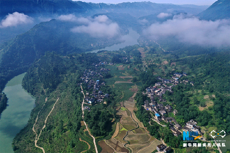 无人机视角下的大坪村全景。新华网发(杨敏 摄)