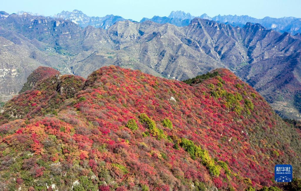 近日,河北省武安市山区的黄栌树进入观赏期,漫山的黄栌树有的泛红、有的泛黄,美如画卷,吸引游客前来观赏游玩。新华社记者骆学峰 摄
