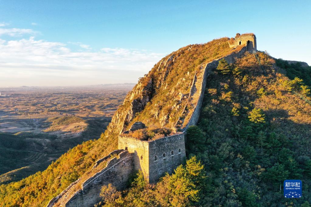 深秋时节,位于河北省迁安市的巍峨长城与连绵山岭交相映衬,风光壮美。新华社记者 金皓原 摄