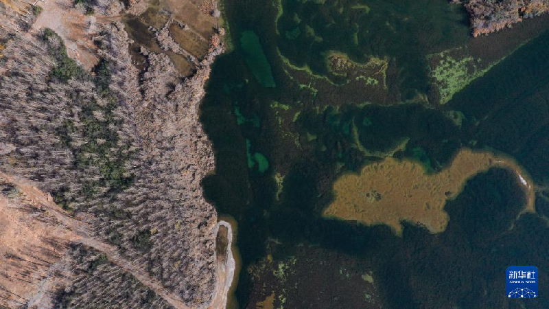 10月28日拍摄的青海贵德县千姿湖景色(无人机照片)。