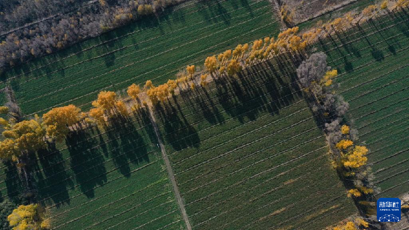 10月28日拍摄的青海贵德县一处麦田(无人机照片)。