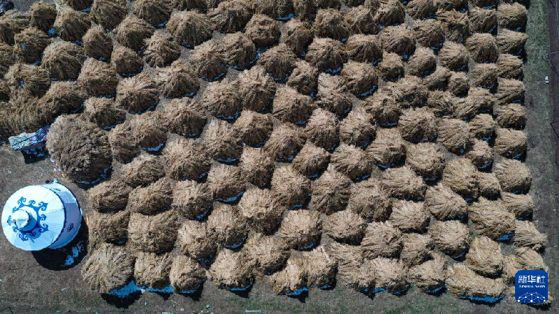 10月28日,在青海省黄南藏族自治州泽库县宁秀乡,当地牧民在草原上放牧。