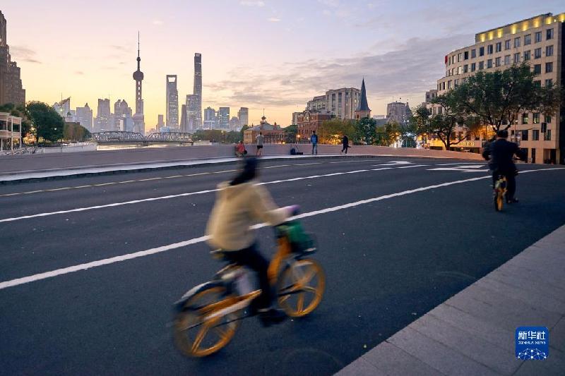 11月4日拍摄的上海乍浦路桥晨景。