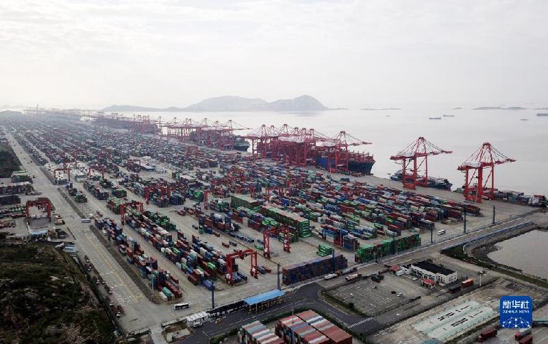 11月3日拍摄的上海洋山港集装箱码头(无人机照片)。
