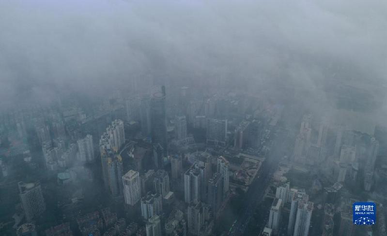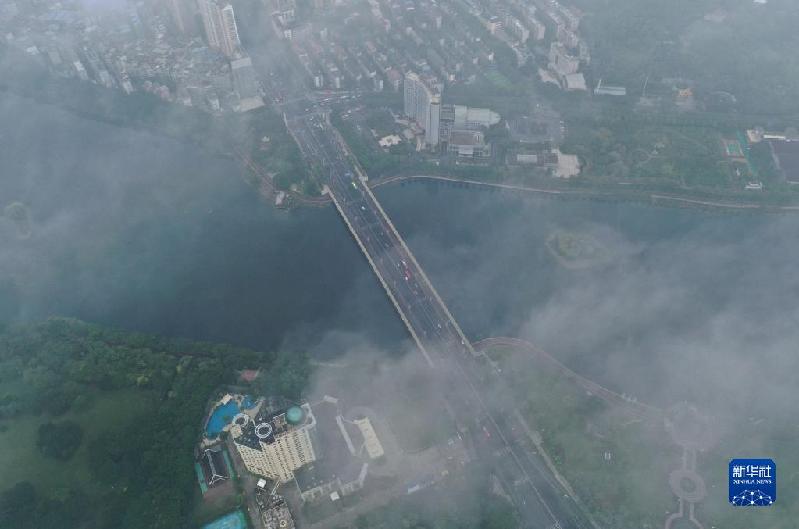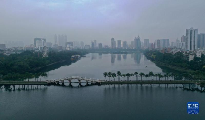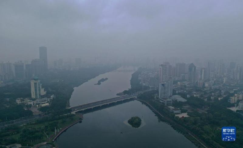 连日来,广西南宁市出现雨雾天气,城市景观笼罩在烟雨中,别具韵味。