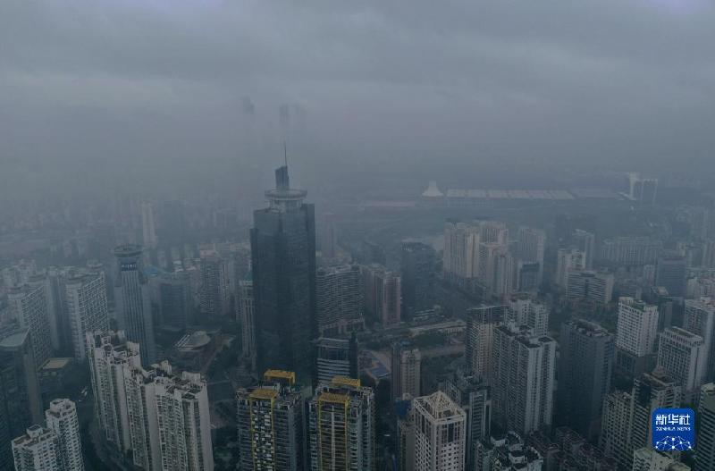 广西南宁市区笼罩在雨雾中(11月21日摄,无人机照片)。