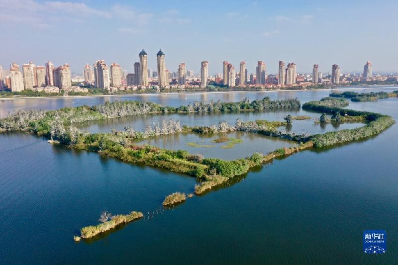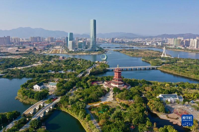 厦门市集美区城市湿地景观(12月8日摄,无人机照片)。