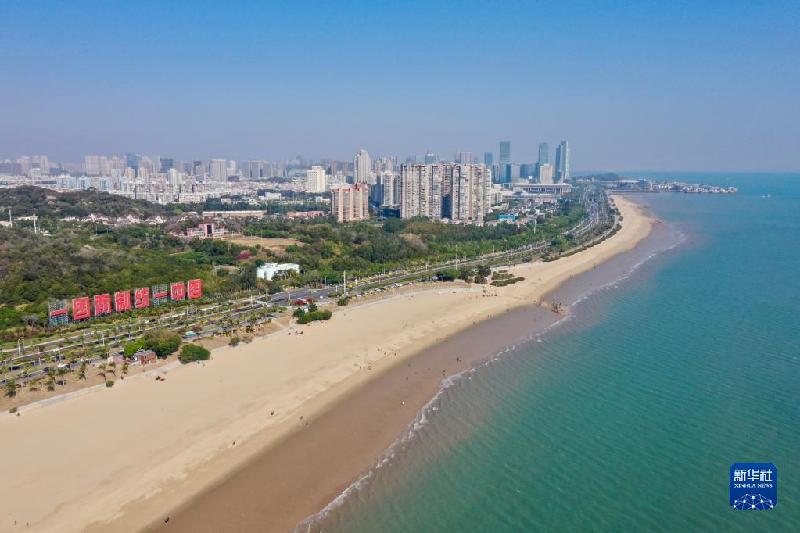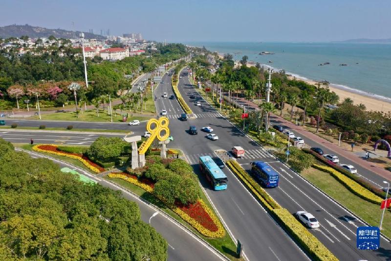 厦门环岛路一带的海滨风光(12月12日摄,无人机照片)。