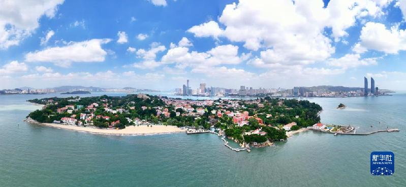 厦门鼓浪屿景区及远处厦门鹭江道一带城市建筑(10月6日摄,无人机照片)。