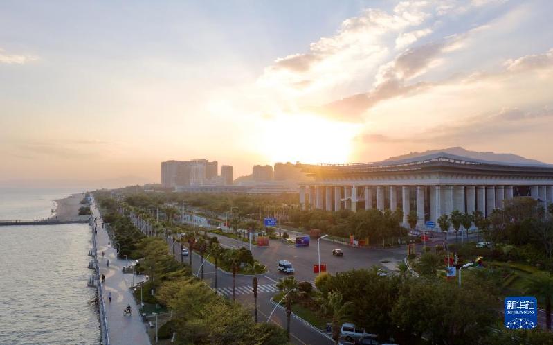 位于厦门环岛路一侧的厦门国际会议展览中心(12月9日摄,无人机照片)。