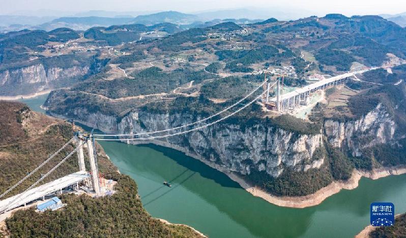 目前,由贵州路桥集团承建的金烽乌江大桥建设进展顺利。金烽乌江大桥是贵阳经金沙至古蔺(贵金古)高速公路项目的重要控制性工程,桥梁全长1473.5米,预计年底建成通车。