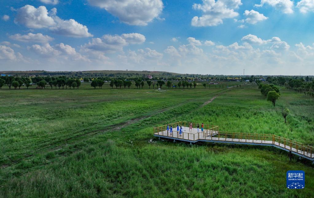 8月5日,游人在尔林兔大草原游玩(无人机照片)。