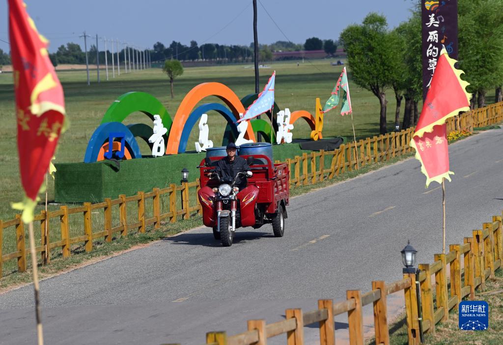 8月5日,村民行驶在尔林兔大草原“音乐之路”上。