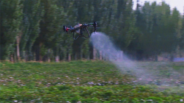无人机植保操作员玉素普介绍道:“自己所使用的大疆T40植保无人机,最大载药量40公斤,每天在条件良好的情况下可作业达到上千亩,这几天来找他进行无人机植保作业的人特别多?!?/p>