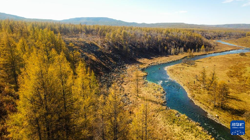 这是9月21日拍摄的阿尔山国家森林公园中不冻河的自然风光(无人机照片)。