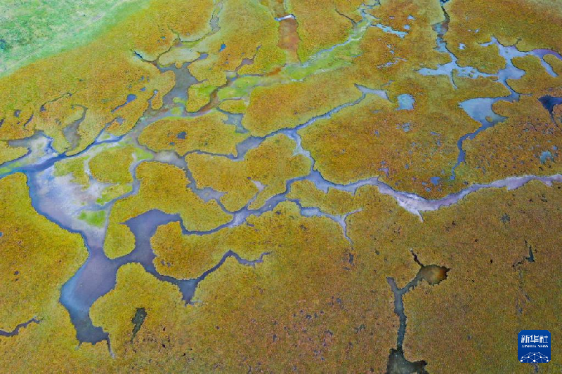 9月17日拍摄的阿万仓湿地风光(无人机照片)。