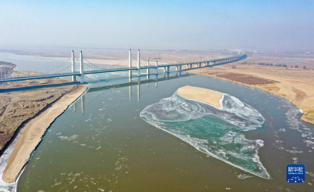 这是2023年1月2日在宁夏银川市拍摄的黄河流凌(无人机照片)。
