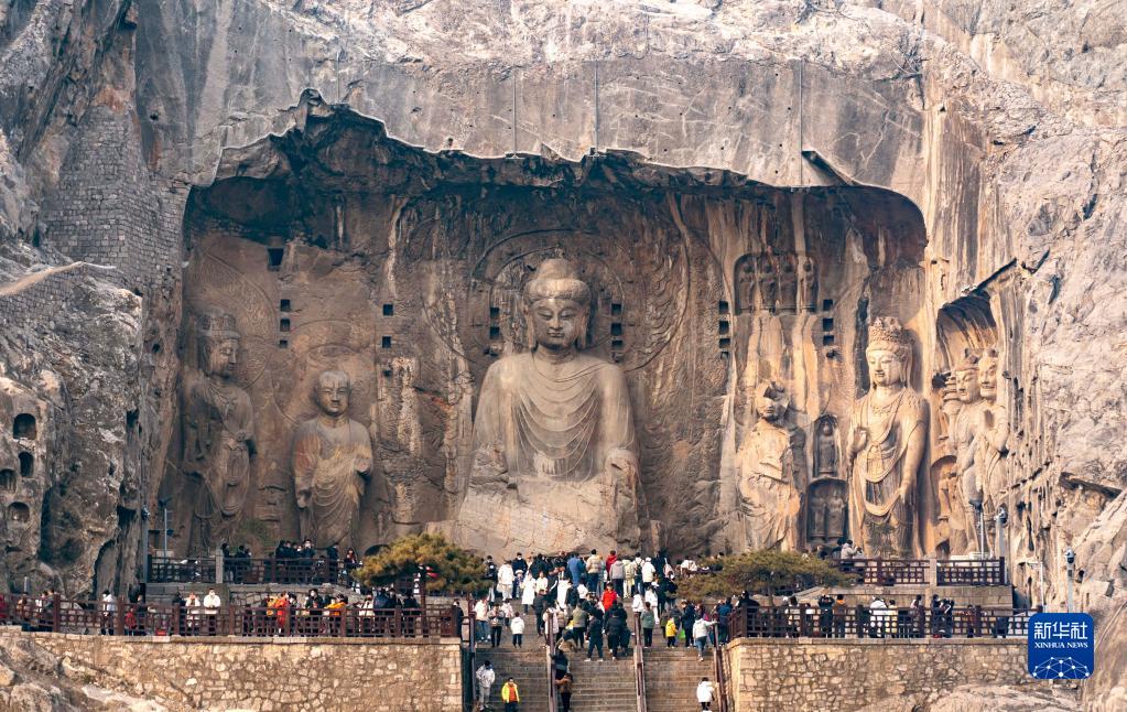 2023年1月2日,游客在洛阳市龙门石窟景区内游玩。