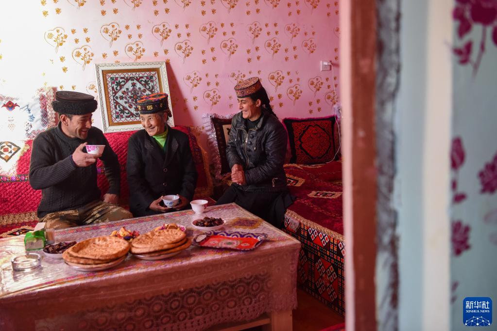 新疆塔什库尔干塔吉克自治县塔提库力易地扶贫搬迁安置点,村民在家中休息聊天(2022年12月20日摄)。新华社记者 丁磊摄