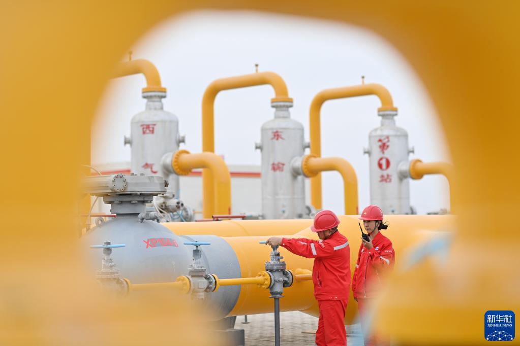 工作人员在新疆塔里木油田西气东输第一站巡检(2023年2月6日摄)。新华社记者 李响 摄