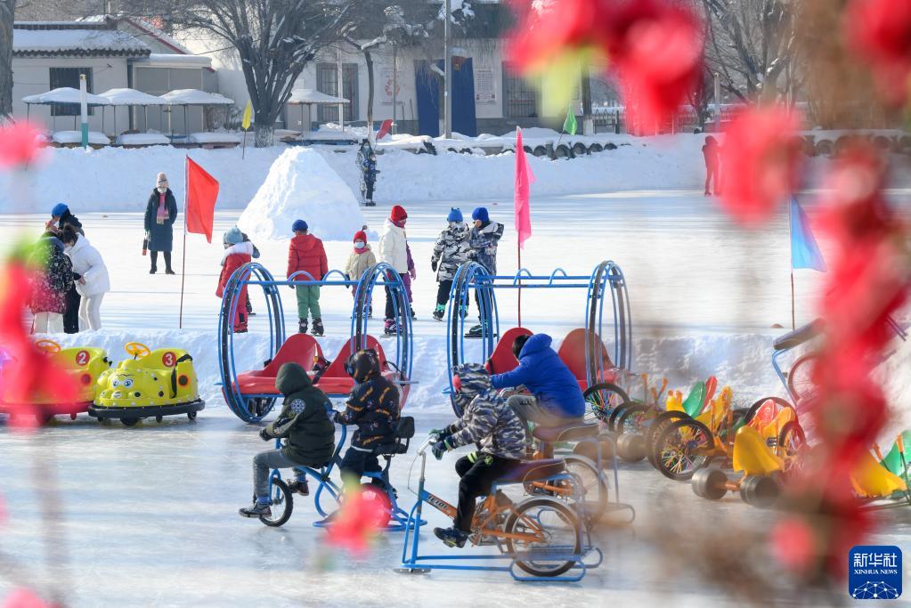 乌鲁木齐红山公园冰场,小朋友在玩耍(2023年1月15日摄)。新华社记者 王菲 摄