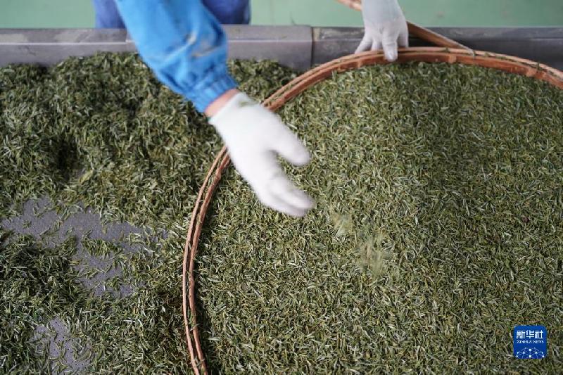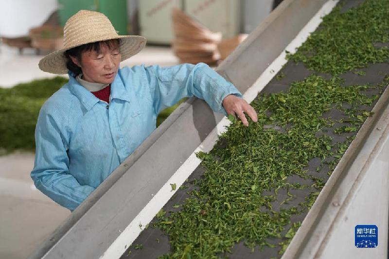 4月5日,陕西省汉中市南郑区青树镇一家茶企的工作人员在生产线上工作。