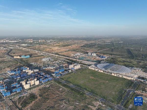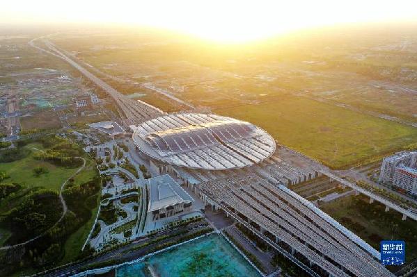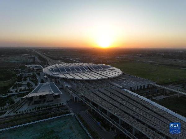 这是雄安站(6月2日摄,无人机照片)。雄安站位于雄安新区昝岗片区,是雄安新区开工建设的第一个重大基础设施项目,具有标志性意义。