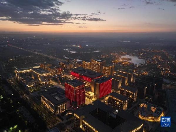 这是雄安新区容东片区夜景(5月31日摄,无人机照片)。容东片区是雄安新区首个集中建成区。