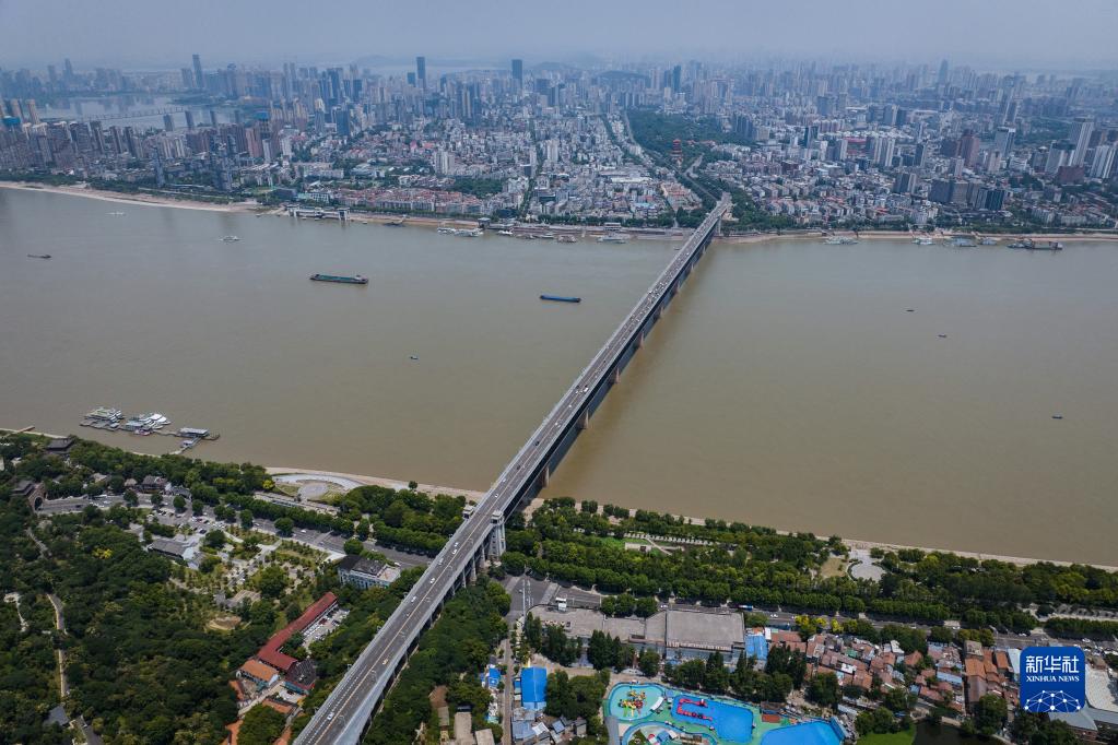6月14日拍摄的武汉长江大桥(无人机照片)。