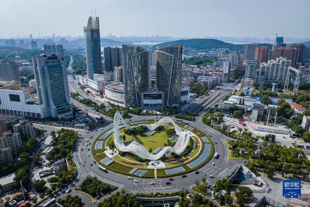 6月14日拍摄的武汉光谷广场综合体(无人机照片)。