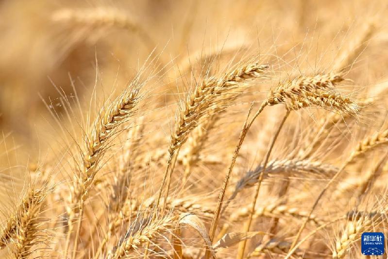 这是在新疆呼图壁县五工台镇小泉村拍摄的成熟的小麦(7月15日摄)。
