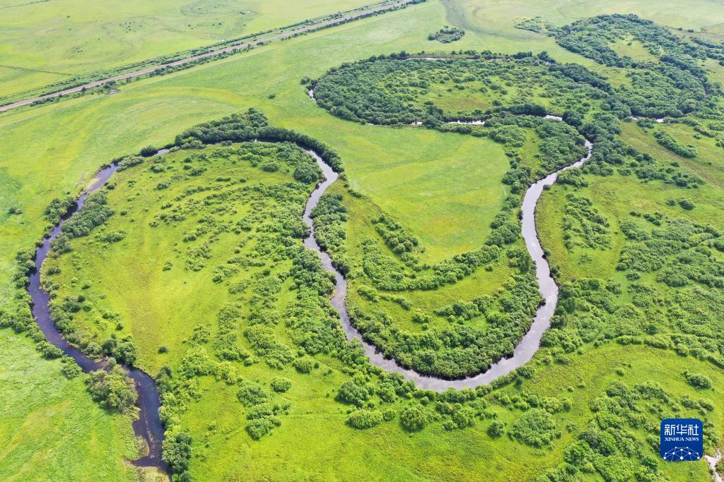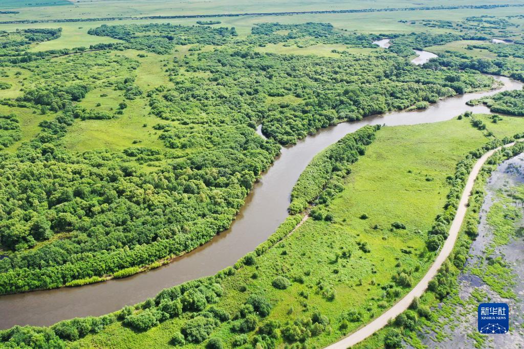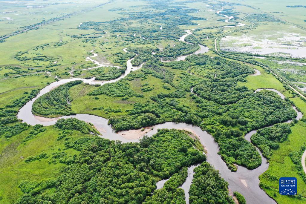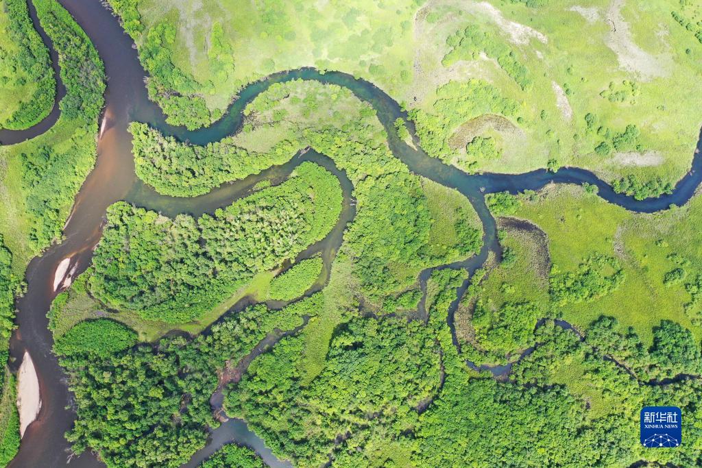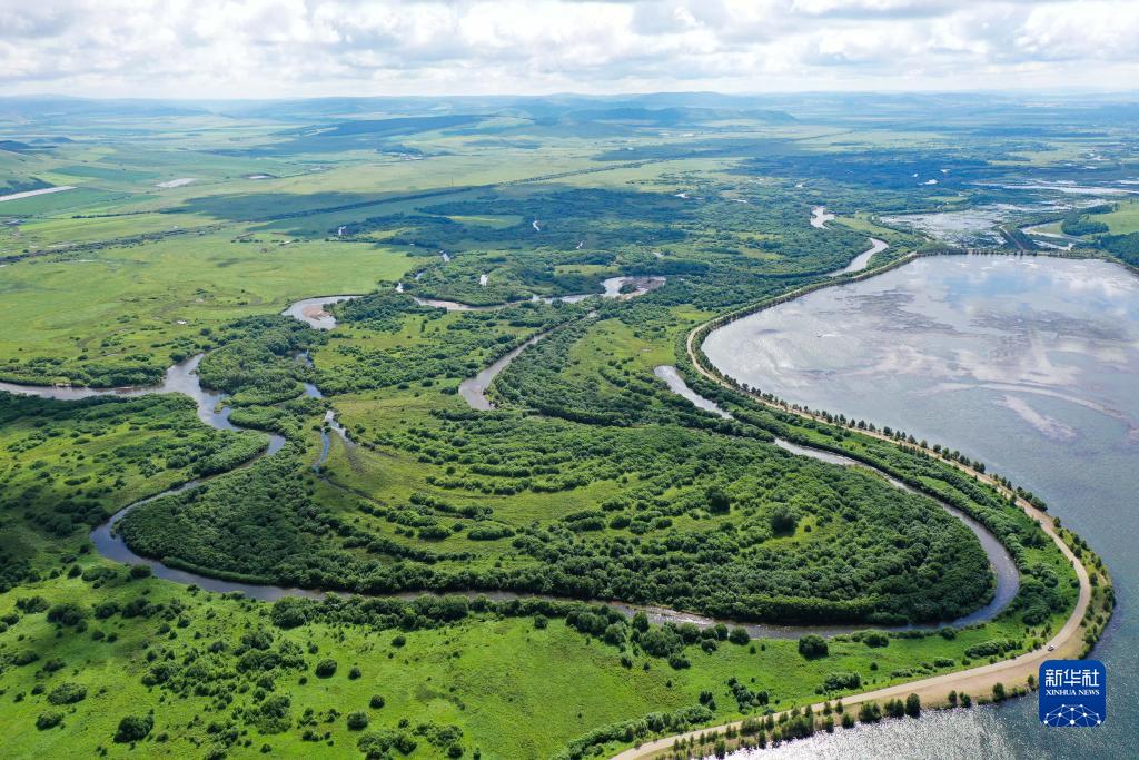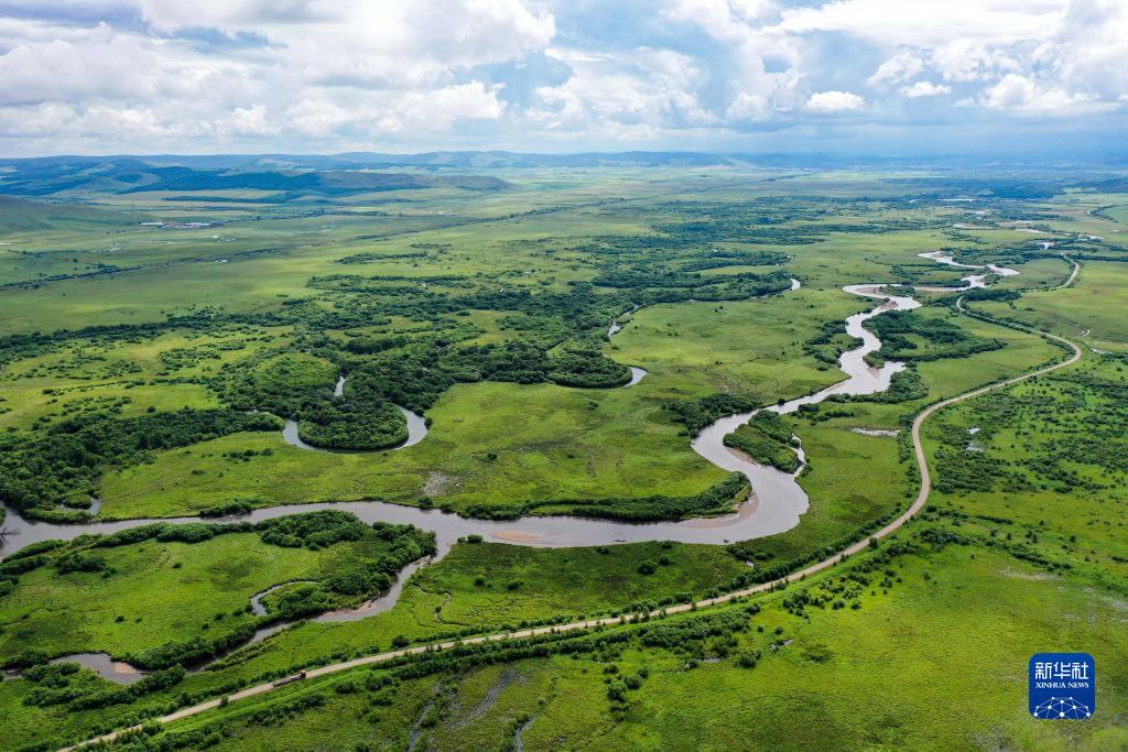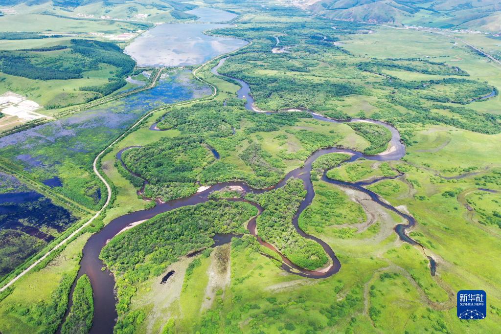 夏日时节,位于内蒙古自治区呼伦贝尔市牙克石市的免渡河国家湿地公园郁郁葱葱,景色优美。
