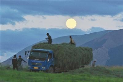 2014年农历七月十五的傍晚,新疆巴里坤草原上,几位牧民将打好的牧草装上卡车。远处的山脊后方,一轮明月冉冉升起,那一刻,大地上依旧有太阳的余光,环境与月亮的光比并不是很大。光圈f5能增加景深,快门速度1/400秒能让焦距200毫米的镜头保持稳定。草原上,牧民们借助月光来打草的场景,构成一幅蛮有趣味的“月亮照”。