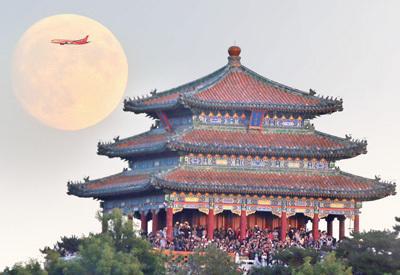2018年农历八月十四的黄昏,北京景山万春亭西侧,上百位摄影爱好者将镜头对准即将落下的太阳。从北海西沿看去,一轮皎洁的月亮出现在万春亭东侧的远方。月亮前,一架前民航客机正缓缓下降高度,即将在首都机场降落。想拍到这样巧合的趣照并不难,利用星空APP“STARWALK”,或是更专业的“PlanltPro”来确定月升的时间、位置,就有机会拍到和地标景观相映成趣的“月亮照”。