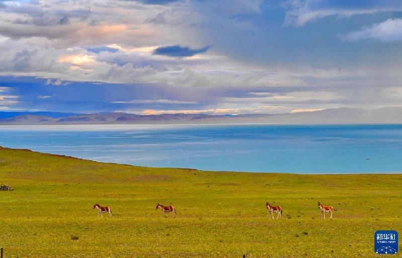 扎日南木错湖畔的藏野驴(8月19日摄)。