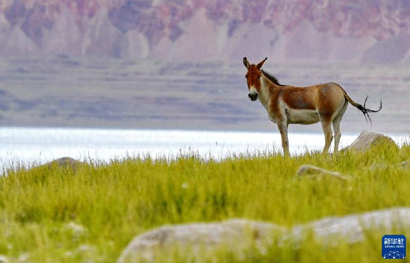 扎日南木错湖畔的一头藏野驴(8月19日摄)。