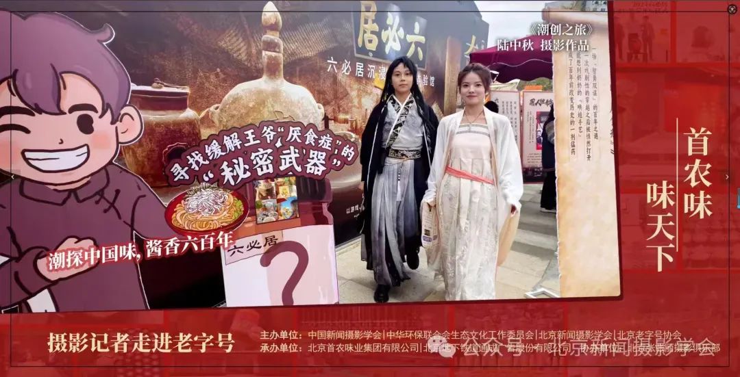 “摄影记者走进老字号”活动是由中国新闻摄影学会、中华环保联合会生态文化工作委员会、北京新闻摄影学会、北京老字号协会共同主办,北京首农味业集团、北京地下铁道通成广告股份有限公司承办,北京张张丽摄影俱乐部协办。本次活动自9月18日启动以来,便受到了社会各界的广泛关注。来自人民网、新华社、新华网、中国新闻社、经济日报、光明日报、工人日报、中国日报、北京日报、北京晚报、北京电台、北京电视台、北京青年报、新京报、北京商报、首都建设报以及快手、抖音、新浪、搜狐、百度、腾讯、网易、小红书、今日头条等众多主流媒体和新媒体对本次活动都给予了深入报道。特别是各路媒体摄影记者带着对传统文化的敬畏和对老字号品牌的热爱,深入到王致和、六必居、白玉、金狮酱油、龙门醋、京华茶叶、月盛斋、大红门、义利食品、红星二锅头、百花蜂蜜、龙顺城、雪莲、雷蒙、稻香村等众多老字号企业。他们走进车间、工坊,门店与劳模、工匠面对面交流,用镜头捕捉老字号的发展与创新,定格那些稍纵即逝的经典瞬间。这些照片不仅展现了老字号企业精湛的技艺和悠久的历史,更彰显了老字号在新时代背景下的坚守与创新。从历史悠久的食品老字号,到技艺精湛的手工艺品牌,再到充满文化韵味的服务行业,每一张照片都讲述着一个个动人的故事,传递着老字号品牌的独特魅力和深厚底蕴。如今,这些精彩的照片以巨幅形式在北京地铁各大换乘站内展出,成为了北京地铁一道亮丽的风景线。